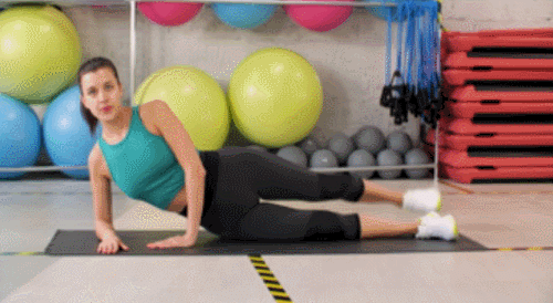 오른쪽 팔뚝을 대고 옆으로 누워서 시작합니다. 왼손은 바닥에 고정하고, 왼쪽 다리를 들었다가 내리면서 오른쪽 다리와 교차하세요. 다리의 위치를 바꿔가며 30초 진행하고, 반대편으로 누워서 동일하게 30초 반복합니다.