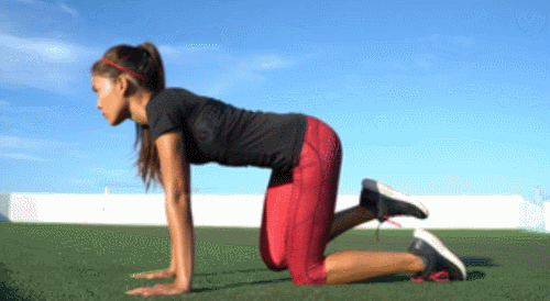 매트에 네발기기 자세로 엎드립니다. 손바닥과 무릎을 대고 시작하세요. 그리고 오른쪽 다리를 공중으로 뻗었다가 돌아오는 킥 동작을 30초 진행합니다. 이번에는 왼쪽 다리를 뒤로 뻗는 동작을 30초 반복하세요. 팔꿈치는 구부러지지 않도록 합니다.