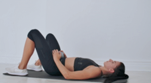 브릿지 업다운 동작에 아령이나 생수병을 추가하여 무게를 더할 수 있는데요. 운동 효과를 높일 수 있습니다. 골반에 아령을 올리고, 브릿지 자세를 만들었다가 원래 자세로 돌아옵니다. 1분 동안 업다운 동작을 진행하세요.