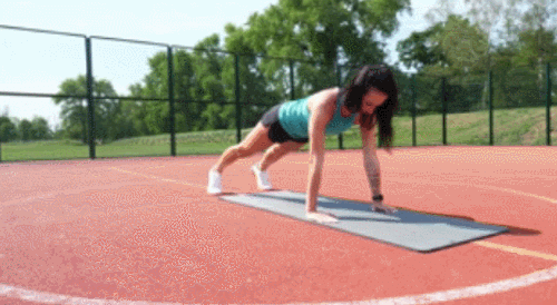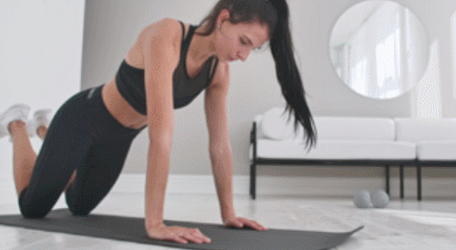 플랭크 자세로 매트에 엎드립니다. 그리고 무릎부터 매트에 닿을 수 있도록 몸 전체를 내리면 되는데요. 몸을 완전히 매트에 붙였다가 다시 원래 자세로 돌아오면, 1회가 완료됩니다. 1분 동안 반복하세요.