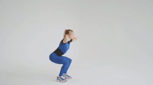 어깨너비보다 다리를 넓게 벌리고 서서 시작하세요. 그리고 엉덩이를 낮추면서 스쿼트를 1회 하고, 일어서면서 점프합니다. 그런 다음 착지하면서 다시 스쿼트 자세로 연결하세요. 점프 스쿼트 동작을 1분 동안 운동하세요.