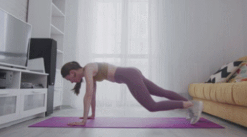 플랭크 자세로 매트에 엎드려서 준비합니다. 그리고 오른쪽 무릎을 왼쪽 팔꿈치로 당겼다가 돌아가세요. 이번에는 왼쪽 무릎을 오른쪽 팔꿈치로 당겨주세요. 시선은 바닥을 향하고, 다리를 교차하면서 1분 동안 진행하세요.