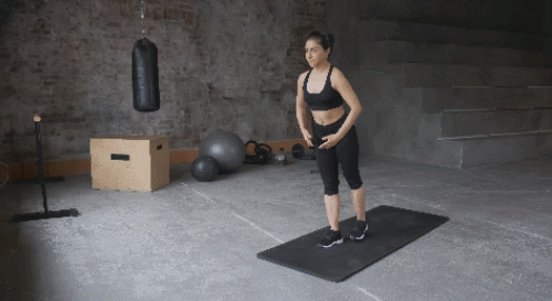매트에 엎드려서 손과 발의 간격을 좁히고, 엉덩이를 공중으로 높이 들어서 다운도그 자세를 만듭니다. 그리고 다리를 손목 방향으로 점프하여 당기고, 상체를 일으켜서 화환 자세로 연결하세요. 1분 동안 2가지 자세를 반복합니다.