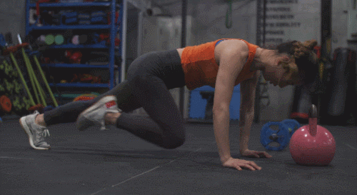 매트에 엎드린 후, 팔꿈치를 펴고, 시선을 바닥에 고정합니다. 플랭크 기본자세를 만들면 되는데요. 그리고 왼쪽 다리를 당겼다가 되돌리면서 오른쪽 다리를 빠르게 교차하세요. 다리를 번갈아 움직이면서 1분간 운동합니다.