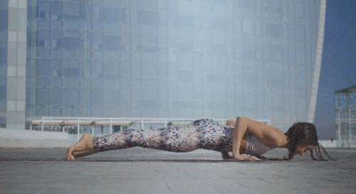 플랭크 자세로 바닥에 엎드려서 시작하세요. 그리고 팔꿈치를 구부리면서 몸을 전체적으로 바닥으로 내리세요. 그런 다음 상체를 일으키면서 허리를 바닥으로 내리고, 코브라 자세로 전환합니다. 다시 상체를 바닥으로 내리면서 엉덩이를 들고, 다운도그 자세를 만듭니다. 1분 동안 계속 반복하세요.