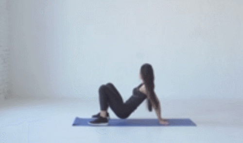 매트에 엉덩이를 대고 앉은 상태에서 손과 발을 바닥으로 누르면서 몸을 공중으로 띄웁니다. 동시에 오른손을 대각선 방향으로 틀어주세요. 원래 자세로 돌아오면, 왼손을 대각선 방향으로 틀어줍니다. 1분간 테이블탑 변형 자세를 진행하세요.