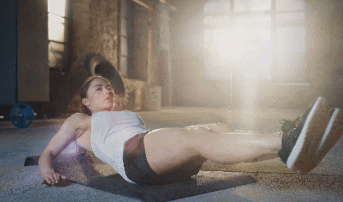매트에 엉덩이를 대고 앉은 상태에서 손바닥을 바닥에 지탱하세요. 그리고 다리를 공중으로 띄웁니다. 그런 다음 상체를 뒤로 젖히면서 다리를 뻗었다가 복부를 향해 모아줍니다. 1분 동안 V업 변형 동작을 진행하세요.