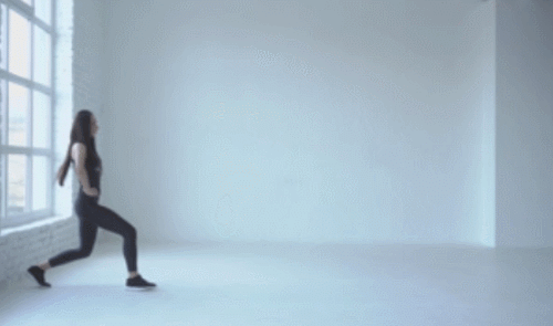 다리를 모으고 바닥에 서서 손을 옆구리로 보내세요. 그리고 오른쪽 다리를 앞으로 뻗으면서 런지 자세를 만드세요. 그런 다음 왼쪽 다리를 앞으로 이동하면서 런지 동작을 반복합니다. 앞으로 움직이면서 1분간 운동하세요.
