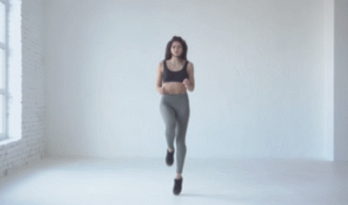 다리를 모으고 바닥에 서서 준비하세요. 그리고 왼쪽 무릎을 당기면서 공중으로 올리고, 오른쪽 무릎을 당기면서 올려줍니다. 다리를 번갈아 뛰면서 무릎을 당겨주면 되는데요. 1분 동안 반복하고, 상체는 안정적으로 잡아줍니다.
