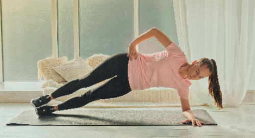 왼쪽 팔뚝을 매트에 대고 옆으로 누워서 시작하세요. 엉덩이를 공중으로 띄우고, 플랭크 자세를 만듭니다. 그리고 엉덩이를 바닥으로 내렸다가 드는 업다운 동작을 30초 진행하세요. 이번에는 반대편으로 돌아서 눕고, 동일하게 30초 운동합니다.