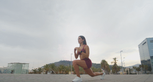 바닥에 서서 준비하세요. 오른쪽 다리를 뒤로 내딛고, 런지 자세를 만듭니다. 그리고 앞으로 당기면서 킥 동작을 추가하세요. 30초 동안 반복 후, 왼쪽 다리로 동일하게 30초 반복합니다. 시선은 정면을 유지하세요. 100개를 목표로 운동합니다.