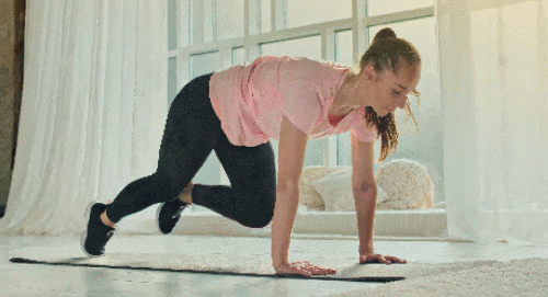 바닥에 손을 대고 엎드려서 시작합니다. 팔꿈치를 펴고, 시선은 바닥을 향합니다. 그리고 왼쪽 다리를 당겼다가 되돌리는 동시에 오른쪽 다리를 당겨줍니다. 다리를 번갈아 당겨주면서 1분 동안 빠르게 운동하세요.