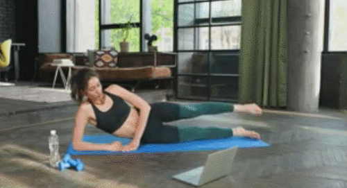 오른쪽 팔뚝을 대고 옆으로 누워서 시작하세요. 오른쪽 다리는 바닥에 붙이고, 왼쪽 다리를 들었다가 내리는 동작을 30초 동안 진행합니다. 이번에는 반대로 돌아서 눕고, 오른쪽 다리를 드는 동작을 30초 진행하세요.