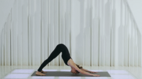 매트에 엎드린 상태에서 엉덩이를 바닥으로 내리고, 상체를 일으킵니다. 코브라 자세를 만들면 되는데요. 머리를 바닥으로 내리고, 엉덩이를 들면서 다운도그 자세로 연결합니다. 다시 코브라 자세로 돌아오면, 1회가 완료됩니다. 1분간 운동하세요.
