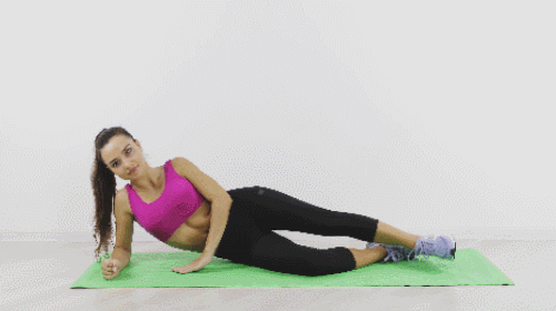 오른쪽 팔뚝을 대고 옆으로 누워서 시작합니다. 왼손은 바닥에 고정하세요. 그리고 왼쪽 다리를 공중으로 들었다가 내리는 동작을 30초 진행하세요. 이번에는 반대로 눕고, 오른쪽 다리를 드는 동작을 30초 진행합니다. 하루 100개를 목표로 반복하세요.