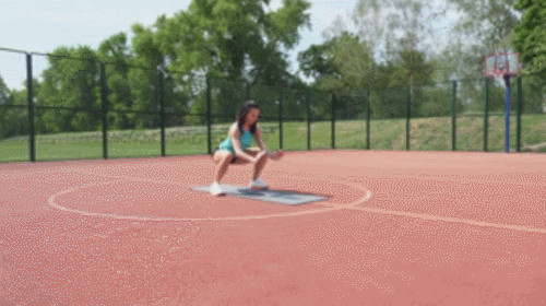 바닥에 서서 시선을 정면을 봅니다. 그리고 왼쪽 다리를 왼쪽으로 점프하면서 오른쪽 다리는 왼쪽 다리 뒤로 보내세요. 동시에 오른손을 앞으로, 왼손은 뒤로 보내면서 스케이트를 타는 것처럼 움직입니다. 반대 방향으로 반복하면, 1회가 완료되며, 1분 동안 진행합니다.