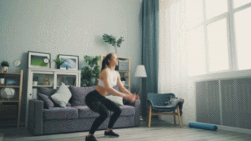 어깨너비보다 넓게 다리를 벌리고 서서 시작하세요. 그리고 무릎을 구부리면서 스쿼트를 진행하고, 일어서면서 점프 동작을 추가합니다. 다시 착지하면서 스쿼트 동작으로 연결합니다. 시선은 정면을 향하고, 상체는 최대한 펴줍니다. 1분간 운동하세요.