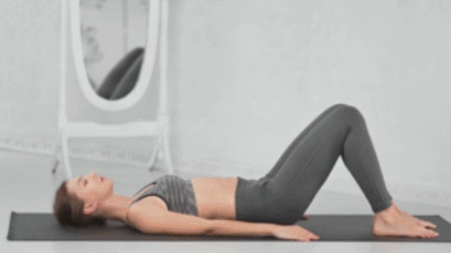 매트에 등을 대고 누워서 무릎을 세워줍니다. 다리를 바닥에 고정하고, 엉덩이를 천천히 들어서 브릿지 자세를 만드세요. 다시 엉덩이를 바닥으로 내렸다가 들어줍니다. 브릿지 업다운 동작을 1분 동안 진행하세요.
