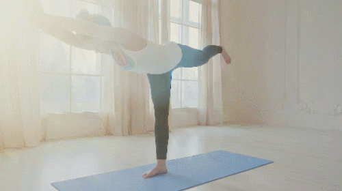 매트에 다리를 모으고 서서 준비하세요. 그리고 왼쪽 다리를 뒤로 뻗으면서 상체를 앞으로 숙입니다. 그런 다음 팔을 뻗어서 몸 전체를 T자 모양으로 만드세요. 자세를 유지하고 버텼다가 상체를 바닥으로 내리면서 다리를 공중으로 올립니다. 30초 운동 후, 반대편 다리로 30초 반복하세요.