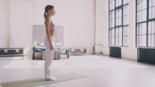 매트에 어깨너비로 다리를 벌리고 서서 시작합니다. 그리고 무릎을 구부리면서 엉덩이를 낮추고, 팔을 앞으로 뻗으면서 체어 자세를 만드세요. 시선은 정면을 향하고, 상체를 구부정하지 않도록 하세요. 1분 동안 버티는 자세를 반복합니다.
