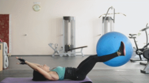 짐볼을 활용하여 레그레이즈 동작을 반복할 수 있는데요. 다리 사이에 짐볼을 끼우고, 매트에 눕습니다. 그리고 다리를 공중으로 드는 동시에 상체를 일으켜서 손으로 짐볼을 잡으세요. 원래 자세로 돌아가면, 다시 손에 있는 짐볼을 다리 사이로 옮깁니다. 1분간 반복하세요.