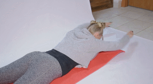 매트에 배를 대고 엎드린 상태에서 준비합니다. 그리고 팔을 머리 위로 뻗어주세요. 그런 다음 상체를 들면서 팔꿈치를 구부리고, 당겨주면서 등을 자극하고 원래 자세로 돌아갑니다. 1분 동안 상체를 드는 동작을 진행하세요.