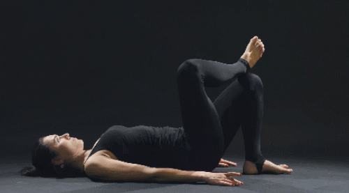 매트에 누운 상태에서 무릎을 세우고, 발을 바닥에 붙이세요. 그리고 오른쪽 다리를 왼쪽 다리 위에 걸칩니다. 그런 다음 엉덩이를 공중으로 들었다가 내리는 동작을 30초 진행하세요. 다리의 위치를 바꿔서 30초 반복합니다.