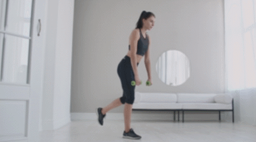바닥에 다리를 모으고 서서 준비하세요. 그리고 왼쪽 다리를 뒤로 들어주면서 상체를 앞으로 숙였다가 돌아오는 동작을 30초 진행합니다. 그런 다음 오른쪽 다리를 뒤로 드는 동작으로 30초 반복하세요. 손에 아령을 들어주면, 운동 효과를 높일 수 있습니다.