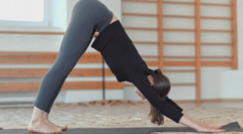 매트에 엎드려서 엉덩이를 공중으로 높이 들어줍니다. 다운도그 자세를 만들면 되는데요. 오른쪽 다리를 당기면서 플랭크 자세를 만들었다가 돌아오고, 왼쪽 다리를 당기면서 동일하게 반복합니다. 1분간 진행하고, 차일드 자세로 스트레칭하세요.