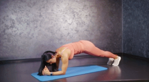 팔뚝으로 지탱하면서 엎드리세요. 그리고 오른쪽 무릎을 당겼다가 되돌리고, 왼쪽 무릎을 당겼다가 되돌립니다. 크로스 방향으로 당기는 동작도 추가하세요. 시선은 바닥을 응시하고, 1분 동안 다리를 번갈아 움직입니다.