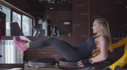 엉덩이를 바닥에 대고 앉아서 손바닥을 지탱하고, 다리를 공중으로 뻗어줍니다. 그리고 상체와 하체를 당겼다가 펴주는 동작을 진행하면 되는데요. 복부 전체를 자극하면서 1분 동안 진행합니다.