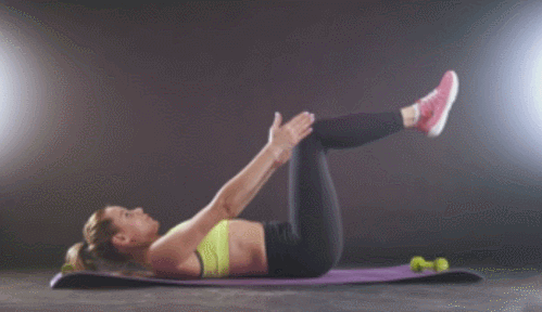 매트에 누운 상태에서 시작합니다. 다리를 공중으로 들고, 무릎을 90도로 구부리세요. 그리고 팔을 뻗고, 상체를 일으키면서 복부를 자극하고 돌아갑니다. 다리의 상태는 유지하고, 1분 동안 상체를 들었다가 내리면서 운동하세요.