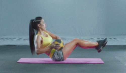 아령이나 볼 등을 손에 들고, 매트에 앉아서 준비하세요. 그리고 상체를 뒤로 젖히는 동시에 다리를 공중으로 들어주세요. 복부에 힘을 주면서 균형을 유지하고, 상체를 좌우로 움직이는 동작을 추가하세요. 1분 동안 운동합니다.