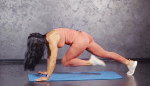 플랭크 자세로 엎드려서 시작하세요. 그리고 오른쪽 무릎을 왼쪽 팔꿈치로 당겼다가 돌아가고, 왼쪽 무릎을 오른쪽 팔꿈치로 당겼다가 돌아갑니다. 다리를 크로스 방향으로 움직이세요. 팔꿈치는 완전히 펴고, 1분간 진행합니다.