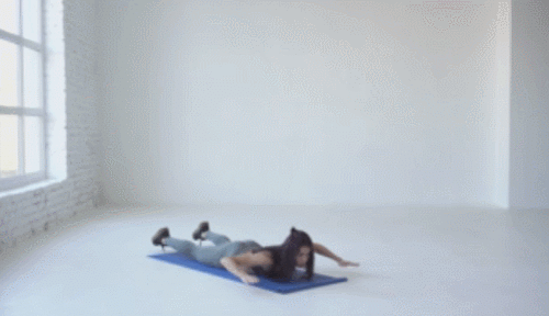매트에 배를 대고 엎드려서 손을 W자 모양으로 만드세요. 그리고 상체와 하체를 공중으로 들면서 손을 앞으로 뻗었다가 돌아옵니다. 상체를 드는 동작을 1분간 진행하면 되는데요. 등을 최대한 자극하면서 1분간 반복합니다.