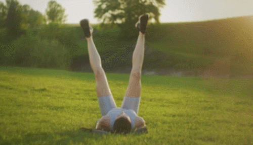 매트에 눕고, 무릎을 세우세요. 그리고 팔을 머리 위로 뻗습니다. 그런 다음 상체를 일으키면서 팔을 당기고, 무릎 방향으로 뻗어줍니다. 복부를 압박하면서 1분 동안 크런치 동작을 반복하세요.