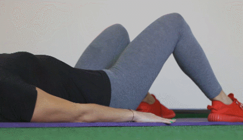 매트에 누운 상태로 시작하세요. 그리고 무릎을 세우면서 발을 바닥에 붙이세요. 그런 다음 엉덩이를 공중으로 띄우면서 몸을 사선으로 만들었다가 원래 자세로 돌아옵니다. 엉덩이에 힘을 주고, 1분 동안 업다운 동작을 진행하세요.