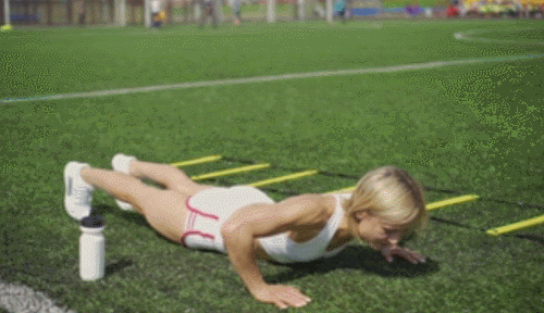 매트에 엎드려서 시작하세요. 팔굽혀펴기를 1회 하고, 오른손을 앞으로 이동하면서 팔굽혀펴기를 반복합니다. 손을 움직이면서 팔의 각도를 바꿔가며 진행하면 되는데요. 1분 동안 운동하고, 몸 전체가 바닥으로 내려갈 수 있도록 하세요.