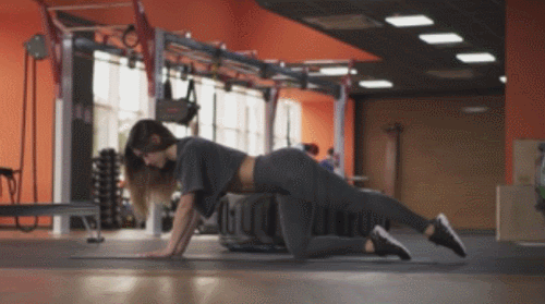 매트에 엎드려서 플랭크 기본자세를 만듭니다. 그리고 왼쪽 다리를 당겼다가 되돌리고, 오른쪽 다리를 당겼다가 되돌리면, 1회가 완료됩니다. 다리를 점차 빠르게 움직이면서 교차하면 되는데요. 1분 동안 진행하고, 팔꿈치를 완전히 펴도록 합니다.