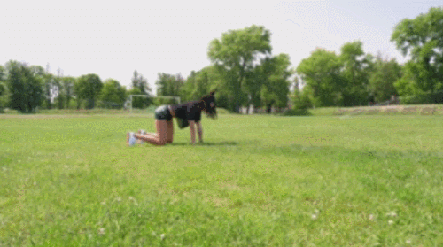 매트에 엎드린 상태로 다운도그 자세를 만듭니다. 그리고 무릎을 구부리면서 상체를 내려서 네발기기 자세를 만들면 되는데요. 2가지 동작을 1분 동안 반복하고, 무릎이 완전히 바닥에 닿지 않도록 자세를 유지합니다.