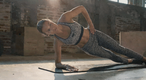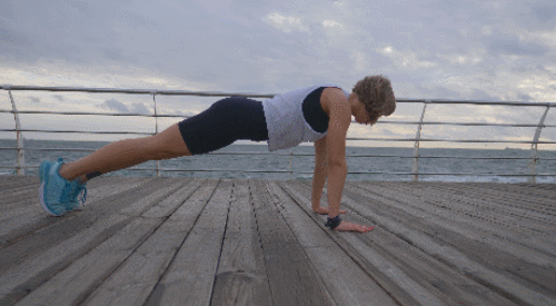 매트에 엎드려서 손바닥을 바닥에 고정하고, 플랭크 자세를 만듭니다. 시선은 바닥을 향하면서 몸을 곧게 뻗어줍니다. 1분 동안 버티세요. 팔꿈치가 구부러지거나 몸이 구부정하지 않도록 주의하세요.
