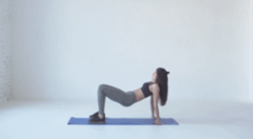 매트에 눕고, 다리를 세우고, 발을 바닥에 고정합니다. 그리고 엉덩이를 공중으로 들어서 브릿지 자세를 만드세요. 몸을 곧게 뻗어준다는 생각으로 버텼다가 원래 자세로 돌아옵니다. 업다운 동작을 1분 동안 진행하세요.