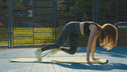 매트에 플랭크 자세로 엎드려서 준비합니다. 그리고 오른쪽 무릎을 왼쪽 팔꿈치로 당겼다가 되돌리고, 왼쪽 무릎을 오른쪽 팔꿈치로 당겼다가 되돌립니다. 크로스 방향으로 무릎을 당겨주면 되는데요. 팔꿈치는 편 상태를 유지하고, 1분간 운동합니다.