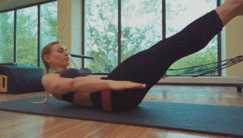 매트에 등을 대고 누운 상태에서 다리를 공중으로 높이 들어주세요. 그리고 상체를 일으키고, 팔을 앞으로 뻗습니다. 그런 다음 팔을 위아래로 움직이면 되는데요. 호흡을 짧게 마셨다가 뱉으면서 1분 동안 운동합니다.