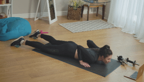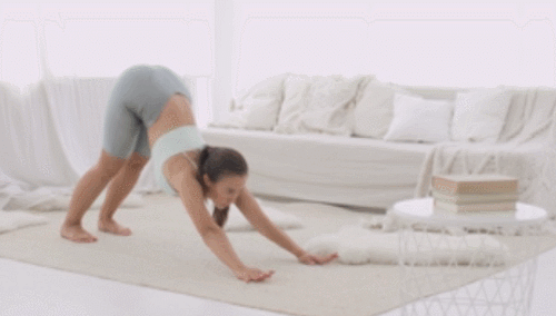 매트에 엎드려서 엉덩이를 높이 들어주세요. 다운도그 자세로 시작합니다. 그리고 엉덩이를 바닥으로 내리는 동시에 상체를 일으켜서 코브라 자세로 전환합니다. 2가지 동작을 빠르게 반복하면서 1분간 운동하세요.