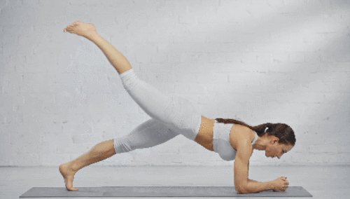 매트에 네발기기 자세로 엎드리세요. 그리고 오른쪽 다리를 뒤로 들었다가 내리면서 킥 동작을 진행합니다. 30초 운동 후, 왼쪽 다리를 드는 동작으로 30초 반복하세요. 시선은 바닥을 향하고, 팔꿈치는 펴줍니다.