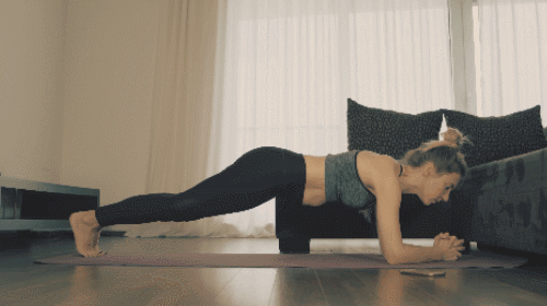 팔뚝으로 바닥에 엎드린 상태로 시작합니다. 그리고 왼쪽 다리를 공중으로 들었다가 내리고, 오른쪽 다리를 공중으로 들었다가 내립니다. 다리를 번갈아 드는 동작을 1분간 반복하세요.