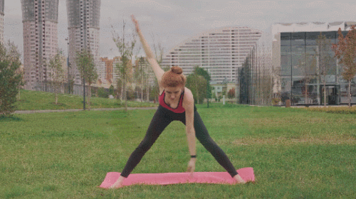 다리를 넓게 벌리고 매트에 서서 준비하세요. 그리고 상체를 앞으로 숙여줍니다. 그런 다음 왼팔을 바닥으로 내리면서 오른팔을 공중으로 들어주세요. 이번에는 오른팔을 바닥으로 내리면서 왼팔을 공중으로 들어줍니다. 1분간 반복하세요. 100개를 채웁니다.