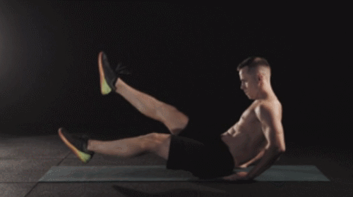 매트에 엉덩이를 대고 앉은 후, 상체를 뒤로 기울입니다. 그리고 다리를 들어서 복부를 자극하세요. 그런 다음 왼발을 올렸다가 내리면서 오른발을 올리는 동작을 진행합니다. 1분간 운동하고, 하루 100개를 목표로 반복합니다.