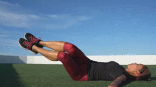 매트에 누운 상태로 손을 머리 위로 뻗습니다. 그리고 상체를 일으키면서 하체를 당겼다가 원래 자세로 돌아갑니다. 1분 동안 반복하세요. 하루 100개를 목표로 더블 크런치 동작을 나눠서 운동합니다.